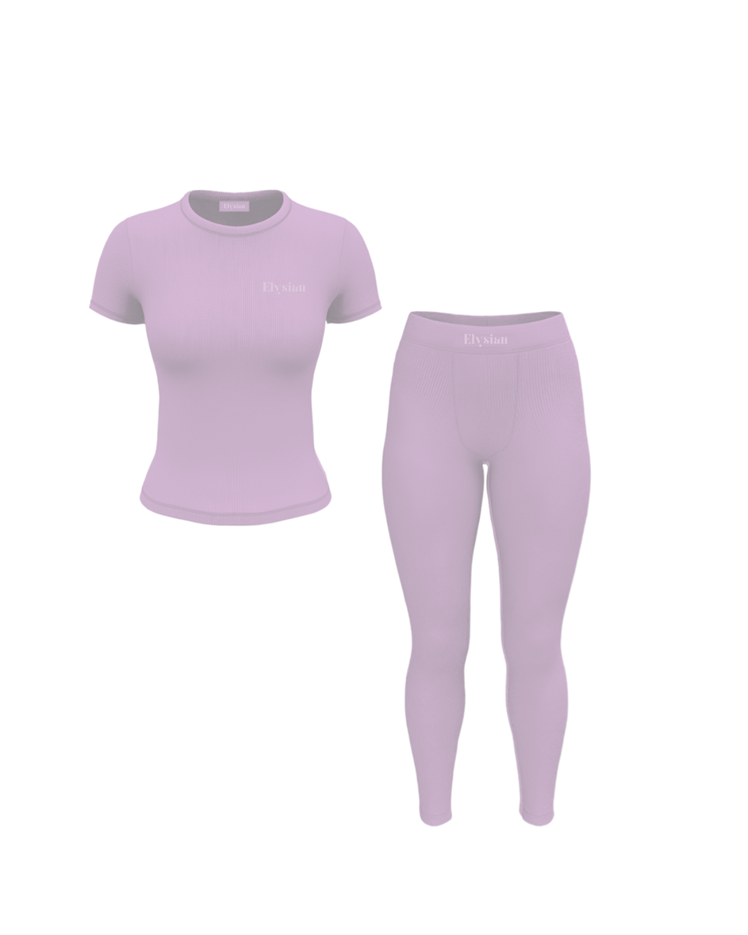 Matching 2 piece cotton ribbed set includes t-shirt and leggings with Elysian embroidery.